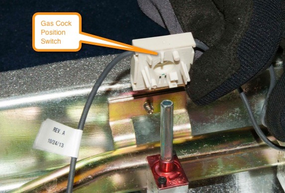 The spark module that creates the high voltage arc is turned on and off by small switches mounted on the gas cocks. These are rotation sensitive switches and all are in parallel. Any one will turn on the module.